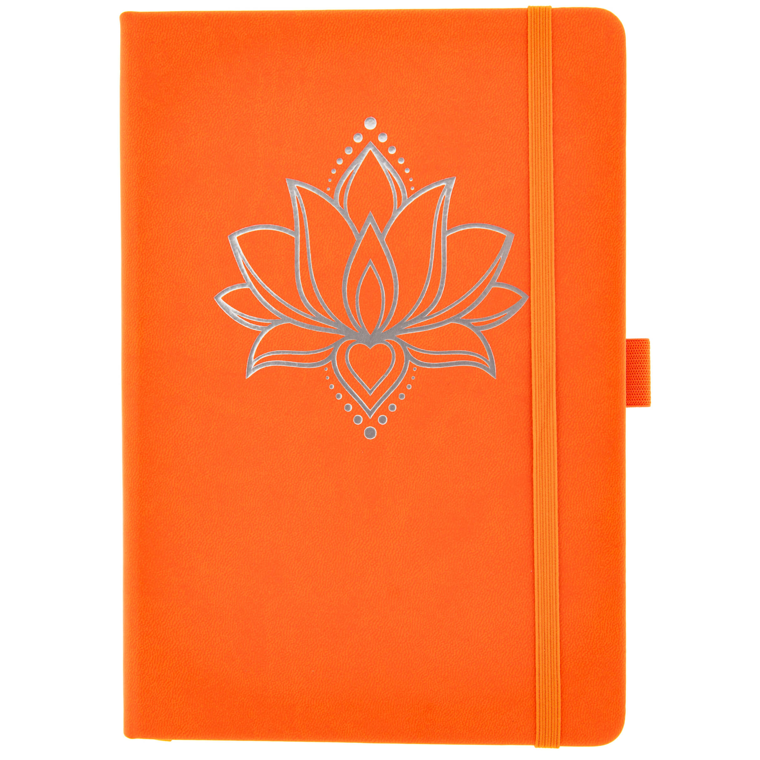 Dieses elegante Schreibbuch ist in Kunstleder gebunden, mit großen Lotus im Silberdruck.