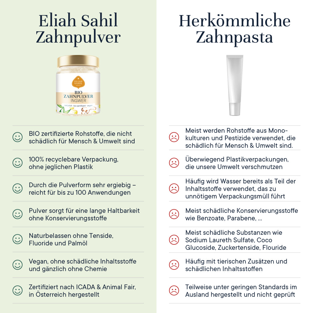 Dieses Bio-zertifizierte Zahnpulver reinigt sanft, aber gründlich die Zähne, sorgt für gesundes Zahnfleisch und Mundflora. Es hemmt die Bildung von Zahnstein und kann Karies und Parodontose vorbeugen.