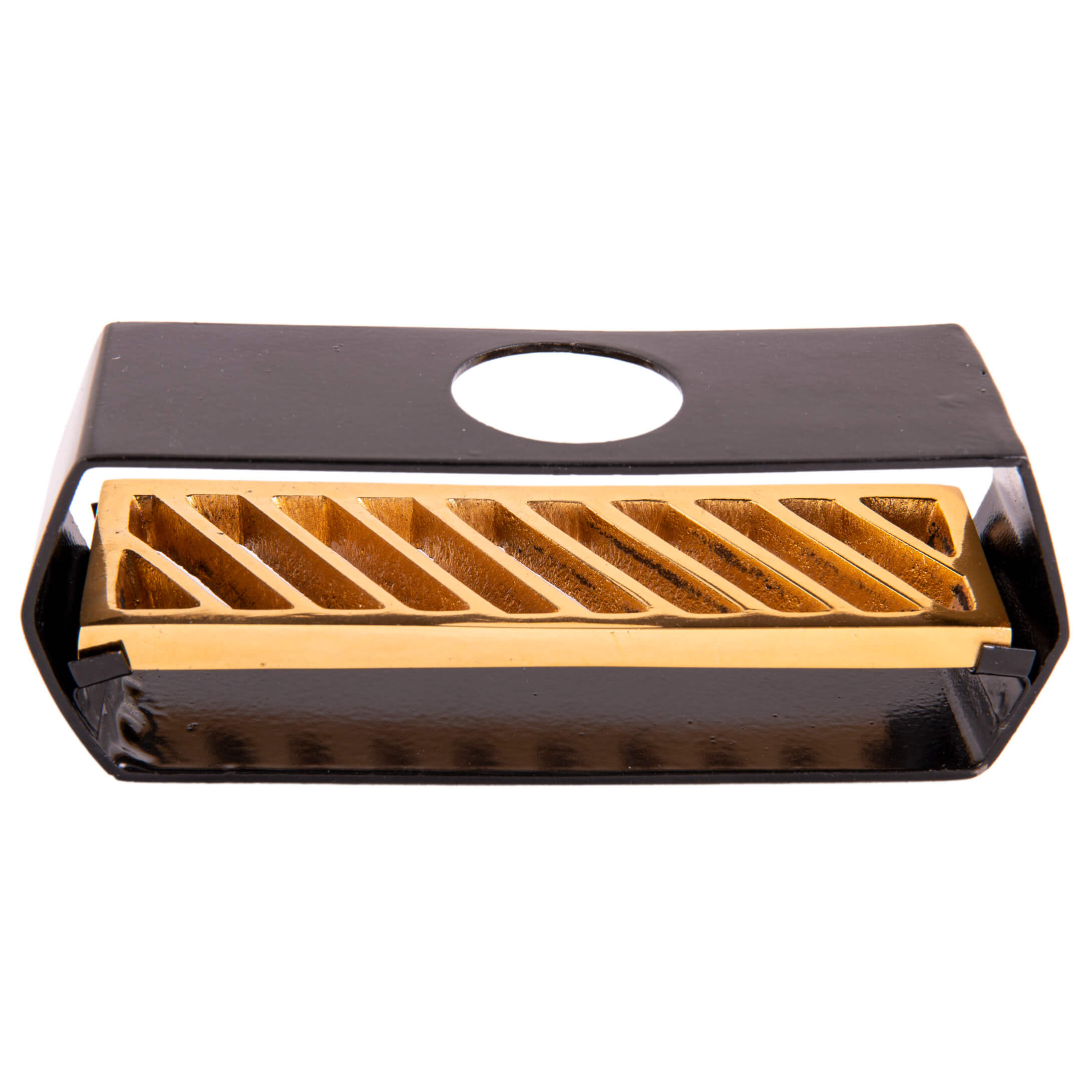 Spezieller Räucherhalter für Palo Santo Sticks für das ausgewählte Ambiente. Seine schwarz-goldene Ausführung in wertigem Metall sorgt für einen echten Hingucker und verleiht der Räucherung etwas Edles und Mystisches.