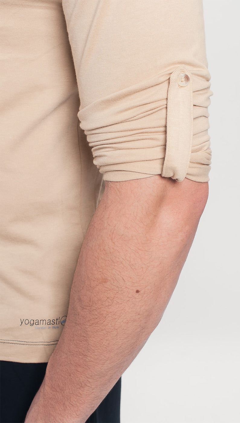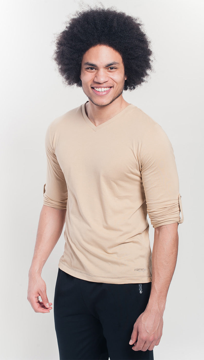 Ein fantastisches Khaki-Shirt für Männer, das sich bestens im Sommer tragen lässt und von Yogamasti auf Grundlage von Kundenfeedbacks entworfen wurde.